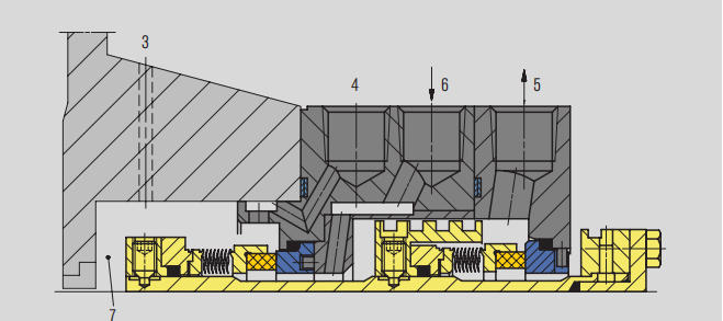 Fluidul de barieră intră în mediul de proces prin suprafața interioară de etanșare.